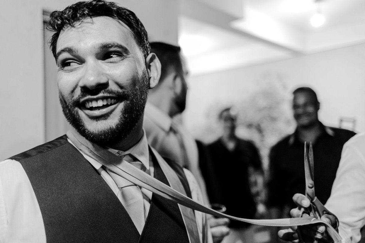 Durante a recepção, antes da chegada da noiva, caiu uma chuva intensa. A equipe rapidamente trocou as mesas e secou as cadeiras, e no final, foi só uma chuva momentânea. Os deuses da fotografia nunca deixam a gente na mão!